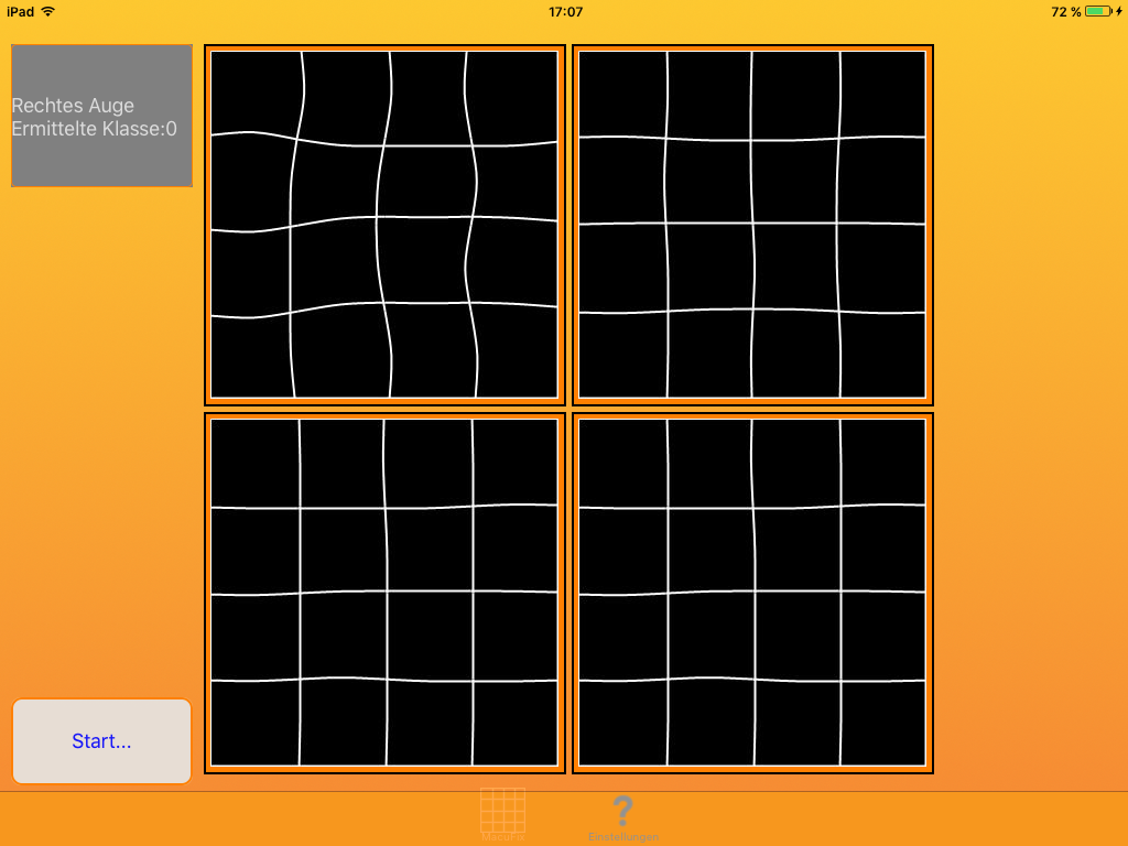 Diese App stellt keine Diagnose und kann nur Hinweise auf Verzerrungen im zentralen Gesichtsfeld geben. Nur ein Arzt kann eine Diagnose stellen. Fragen zu medizinischen Beschwerden müssen immer mit einem Arzt geklärt werden, da nur dieser über das notwendige Fachwissen verfügt.