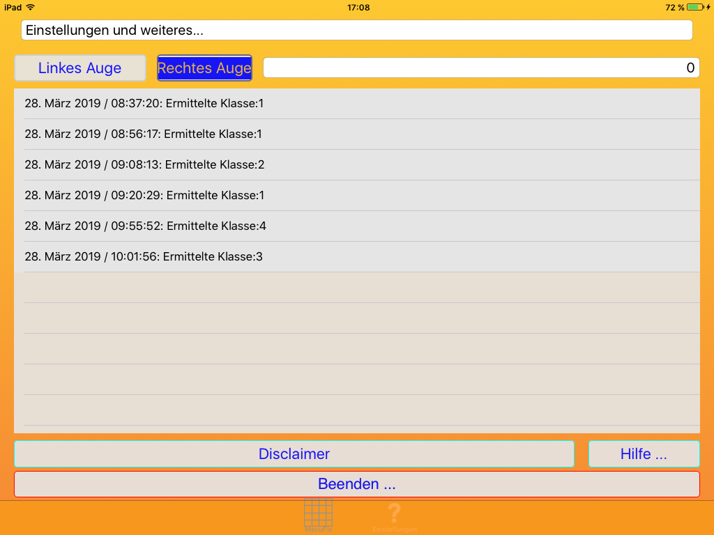 Sie sollten niemals den qualifizierten Rat eines Arztes missachten oder einen Termin mit dem Augenarzt verschieben, indem Sie sich ausschließlich auf die von dieser App gelieferten Informationen verlassen.